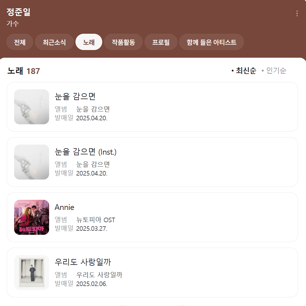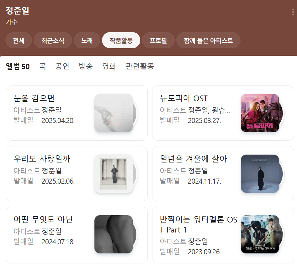 🎼 정준일 아티스트 프로필 (최신 업데이트)